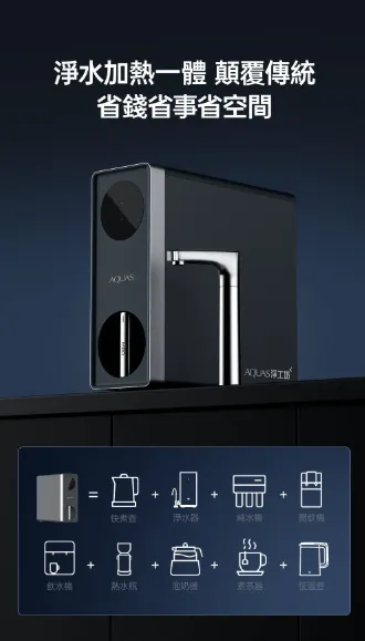 AQ928 為一款結合「RO逆滲透淨水」與「即熱飲水」的多功能淨水設備,一台即可同時滿足純水過濾與熱水需求,省去額外設備安裝,讓廚房空間更簡潔俐落。